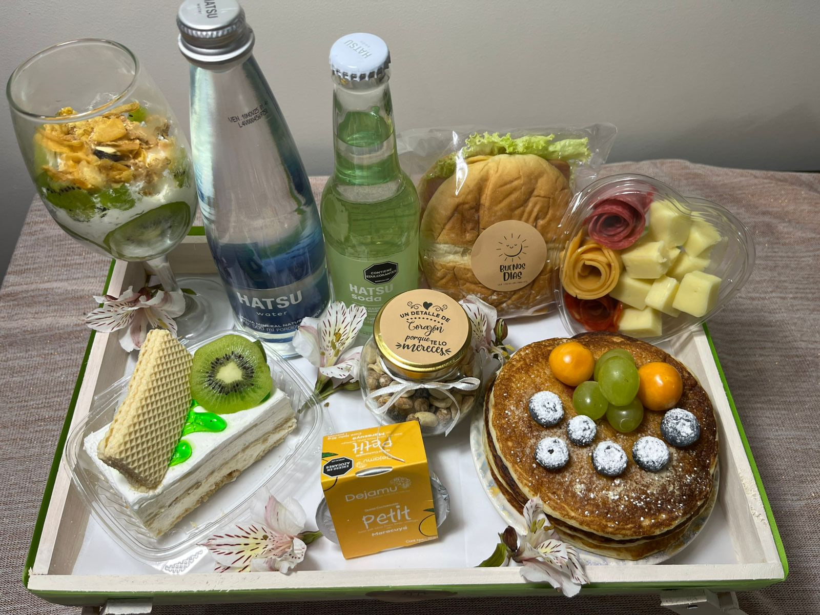 💛 Pancake con fruta arandanos, uvas, uchuvas y miel maple